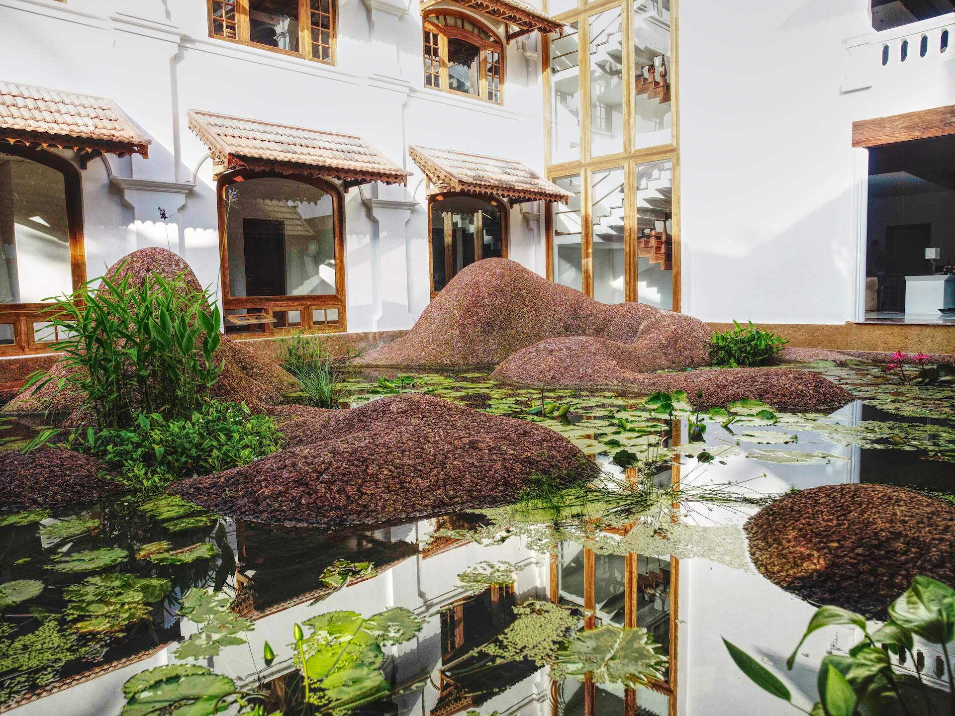 ‘The Raviz' evolved as an environmentally sustainable project, showcasing cultural continuity of this region where the Portuguese, the Dutch and the English ruled, intervened, and contributed to its cultural heritage. The location of the resort is significantly linked to the history of costal, natural and cultural heritage of connected regional estuaries linked with canals from Trivandrum to Cherthala (Travancore Sherthala Canal). Landscape was designed using sustainable landforms with native endemic flora, to encourage the conservation of a fast depleting fauna. The conceptof landscape design evolved to showcase an illustrative example to restore bio-diversity of land and water interface of a costal ecosystem of lake Ashtamudi and its connected backwaters.