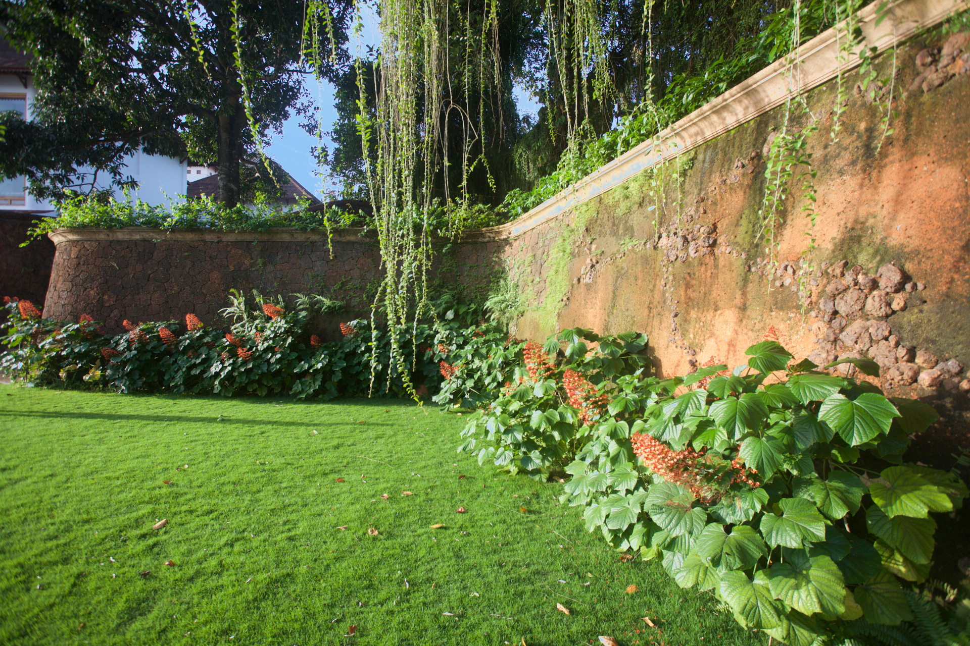The water edge of this property, an old boat building yard was restored to its nearly original state with lateritic boulders incorporating numerous hideouts for natural breeding of fish, crabs and other supporting living organisms. The plants used at the water edge includes species of mangrove to recover the depleting biodiversity.