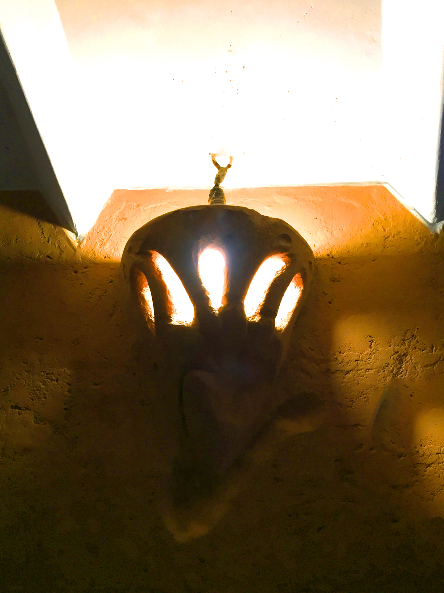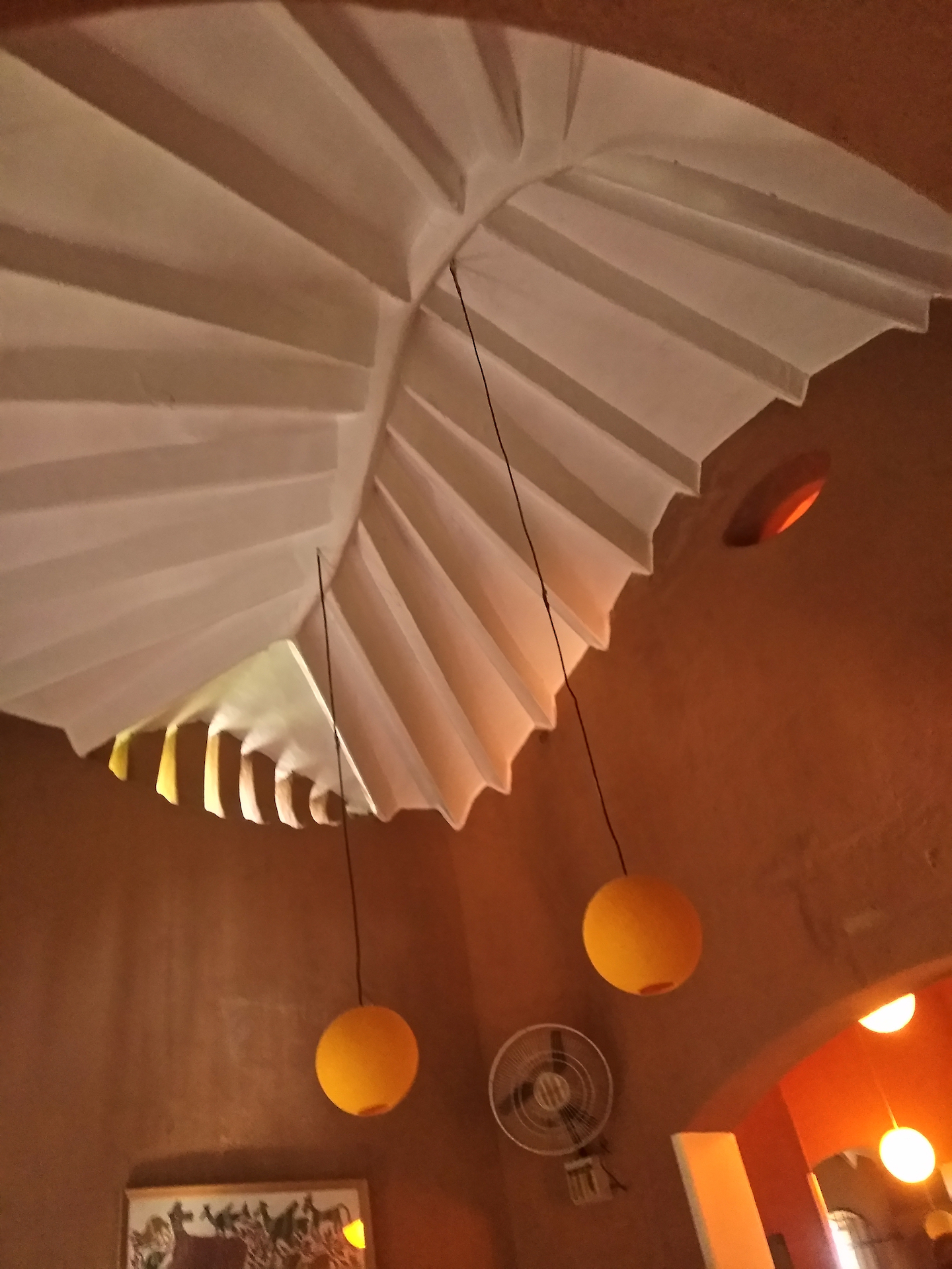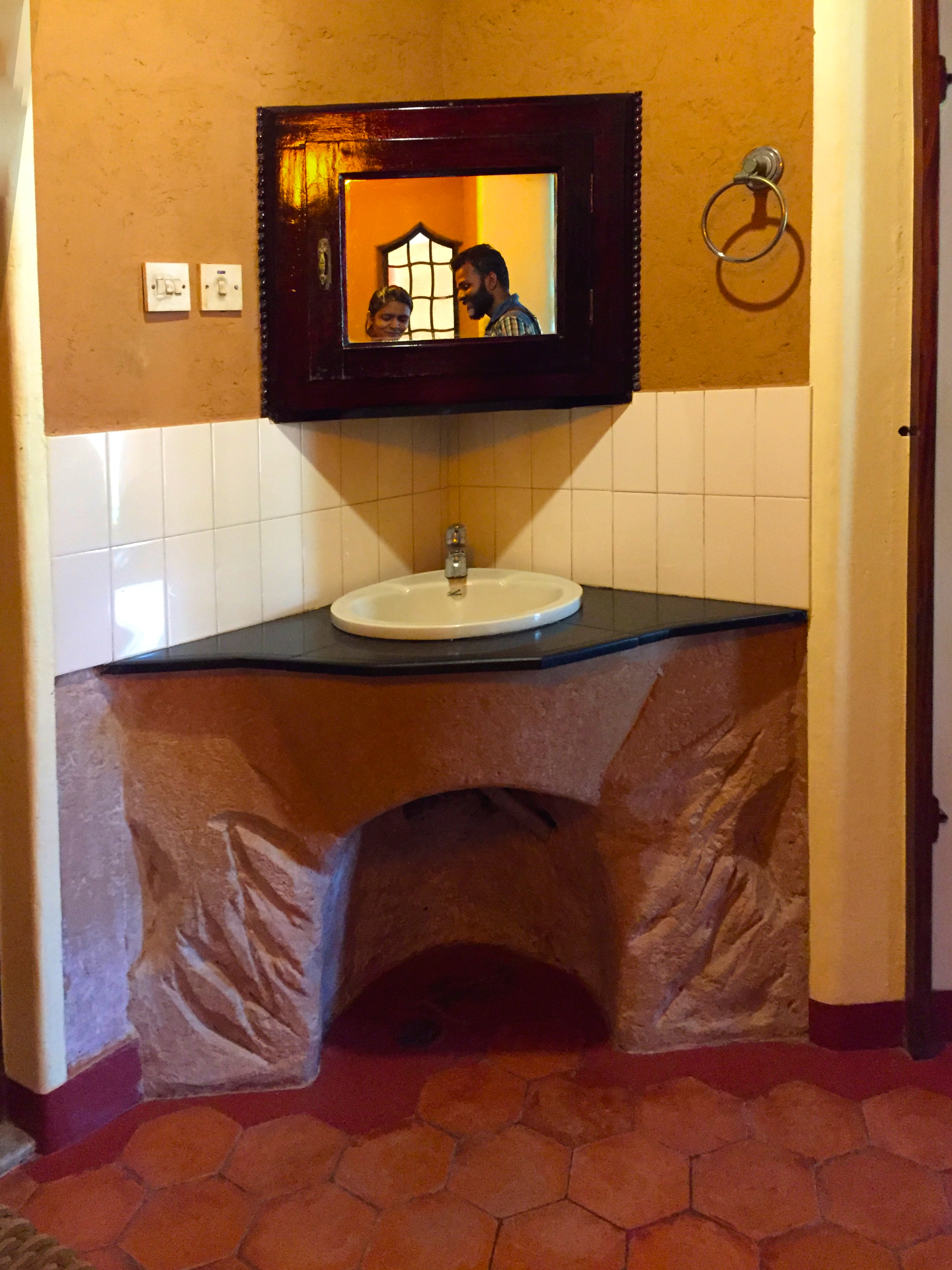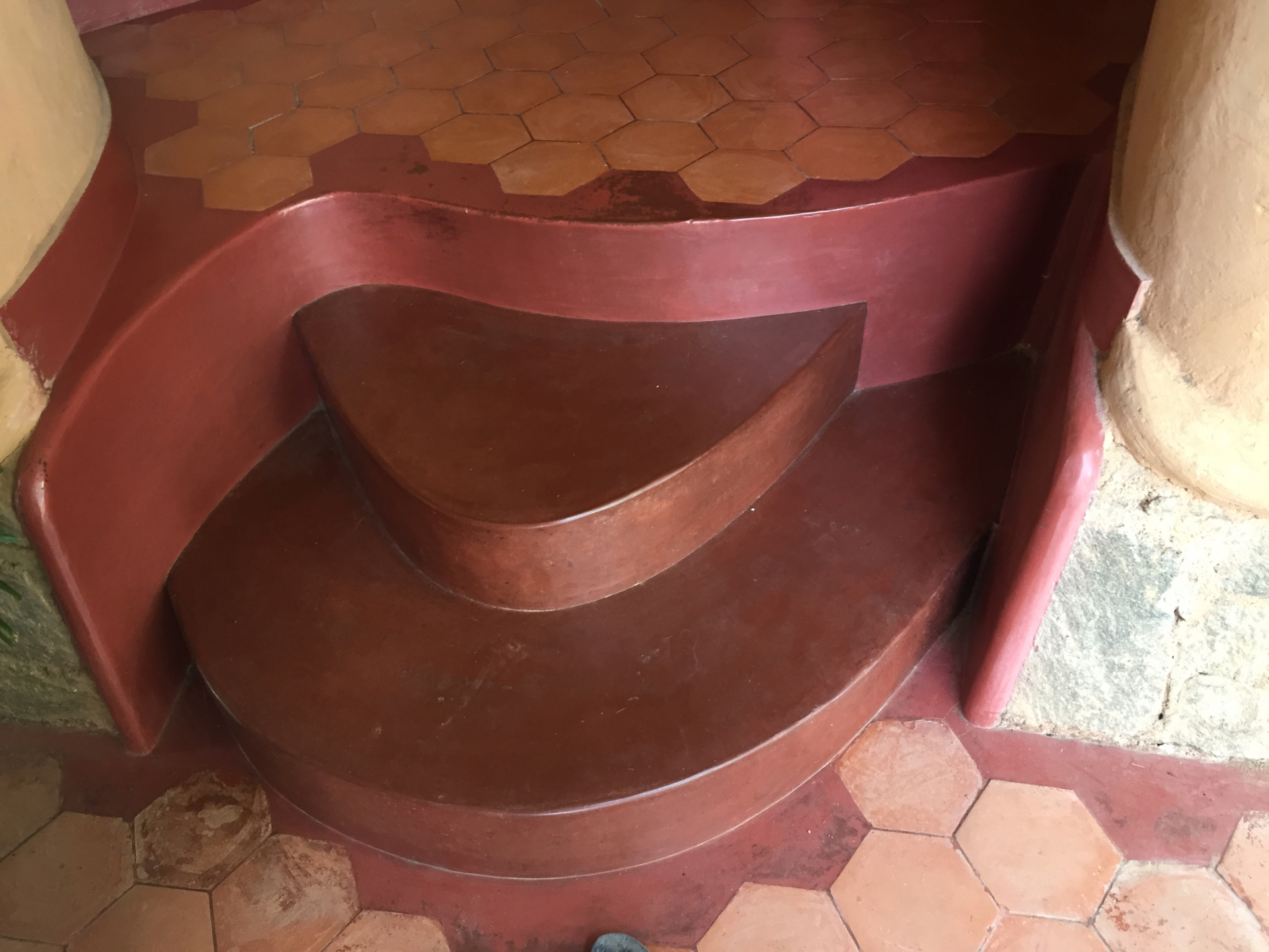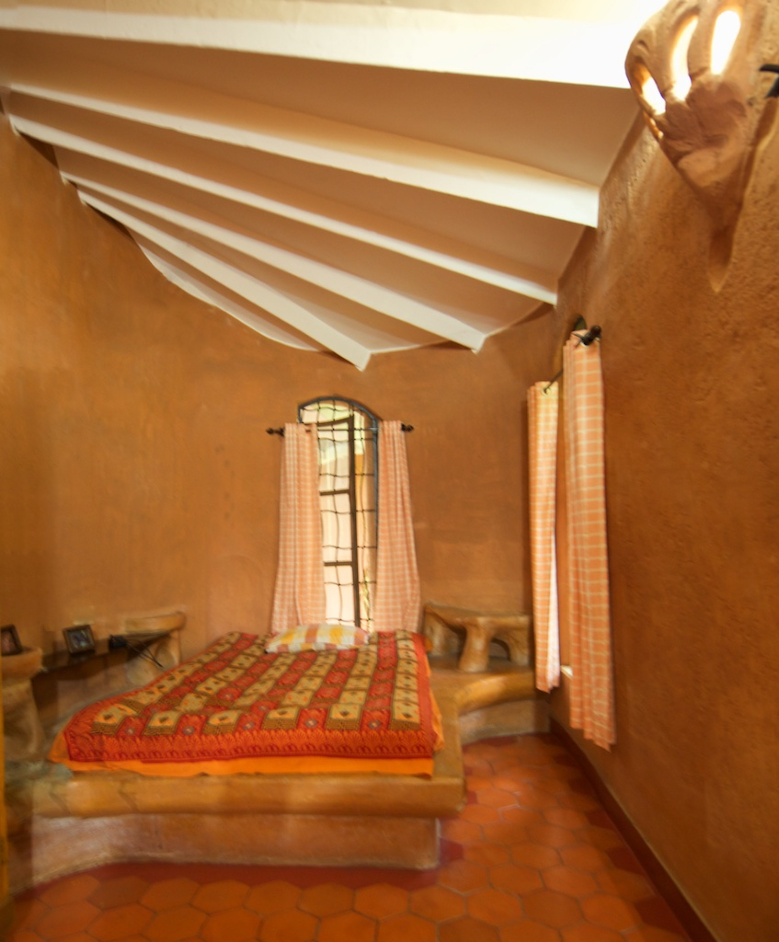 Rising like a mushroom within a lush green coconut grove canopy, the house is designed creating mysterious spaces generating curiosity all along, leaving inhabitants enraptured. The curvaceous form is artistically moulded warping around a courtyard, 4 bedrooms, kitchen, dining room and a living space that blend the warm shades of earth and vegetative green to add a cozy overall tone to the house. It was built of 42 truckloads of mud procured from the excavations of an irrigation canal.