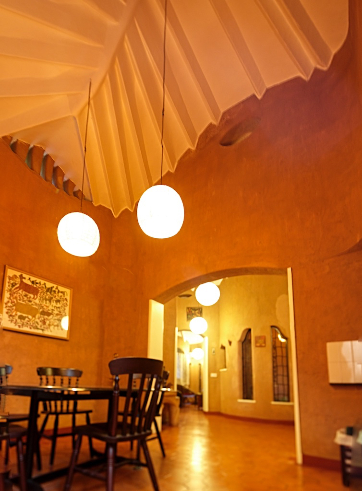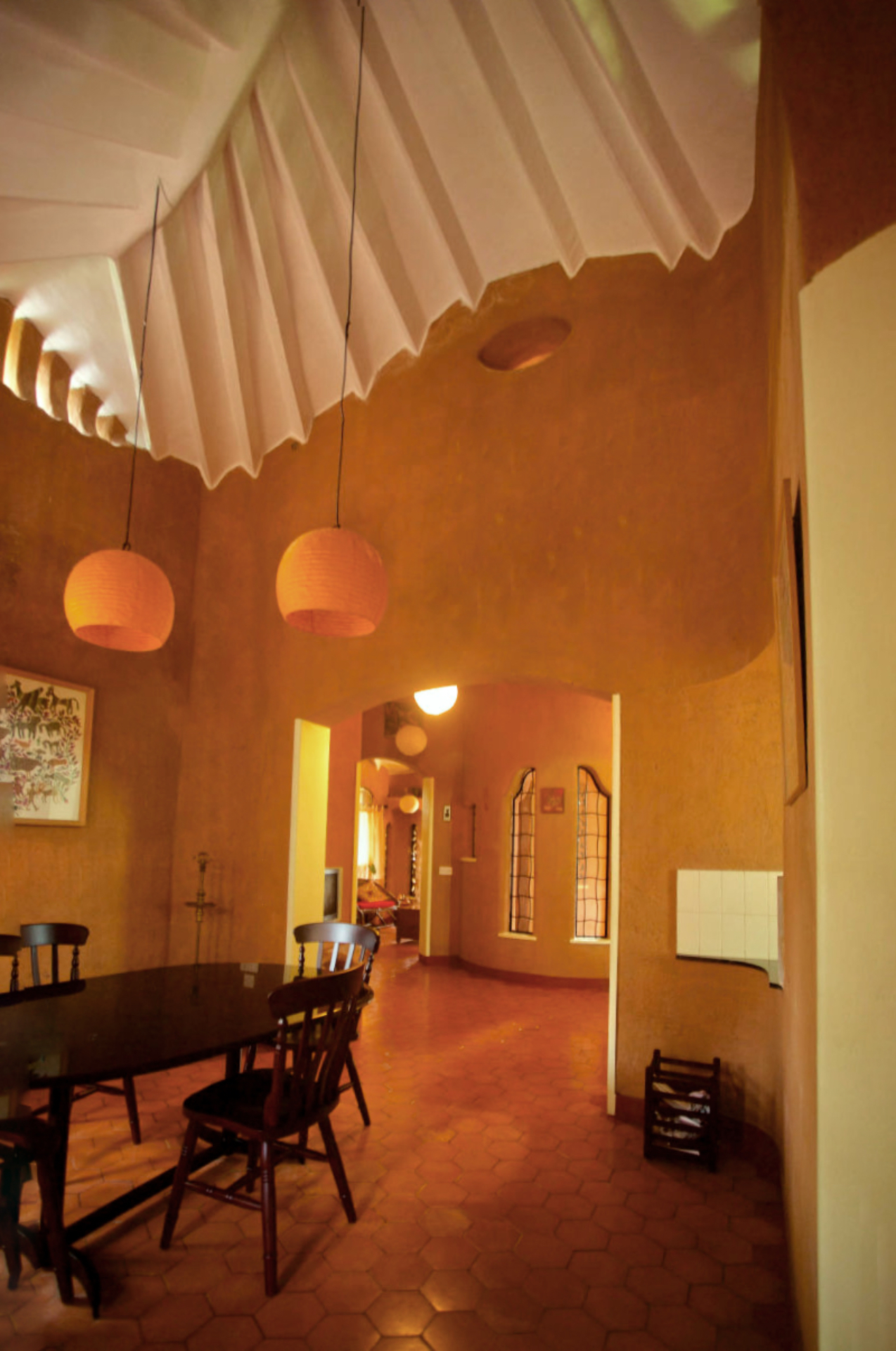 BODHI, a house built with mud for Mr. Jitendran and Prof. Shyma is located in Kollam, Kerala was completed in 1996. Bodhi is one of Eugene Pandala’s first projects that showcased responsive expressionism in architecture which allows conservation oriented ethics to dictate the form and aesthetics of any structure. This house is nature-sensitive, designed with an interesting play between the built and un-built, passively cooling without the use of air conditioners and artificial lighting during day.